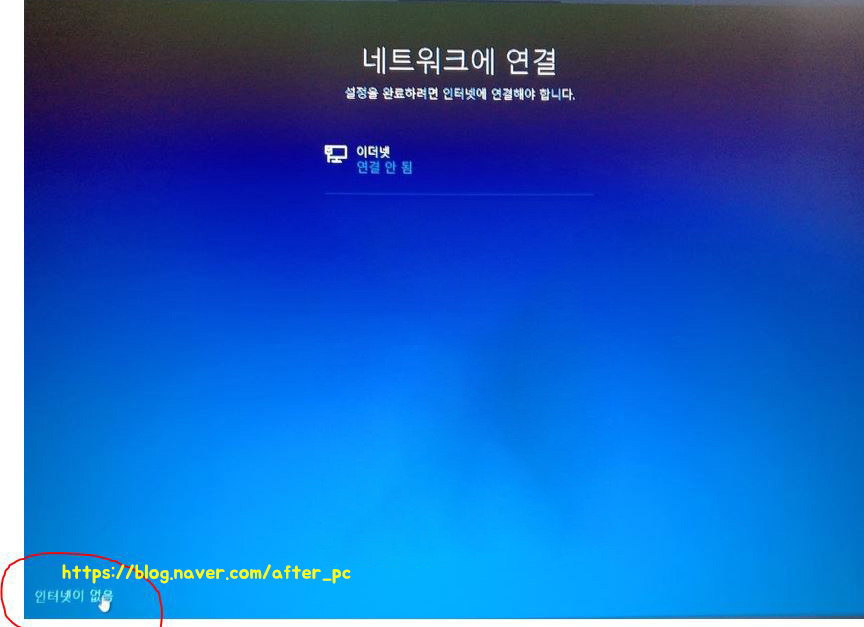(인터넷 설정을 연결할 경우 microsoft계정 연결 및 번거로운 절차가 많아집니다.)