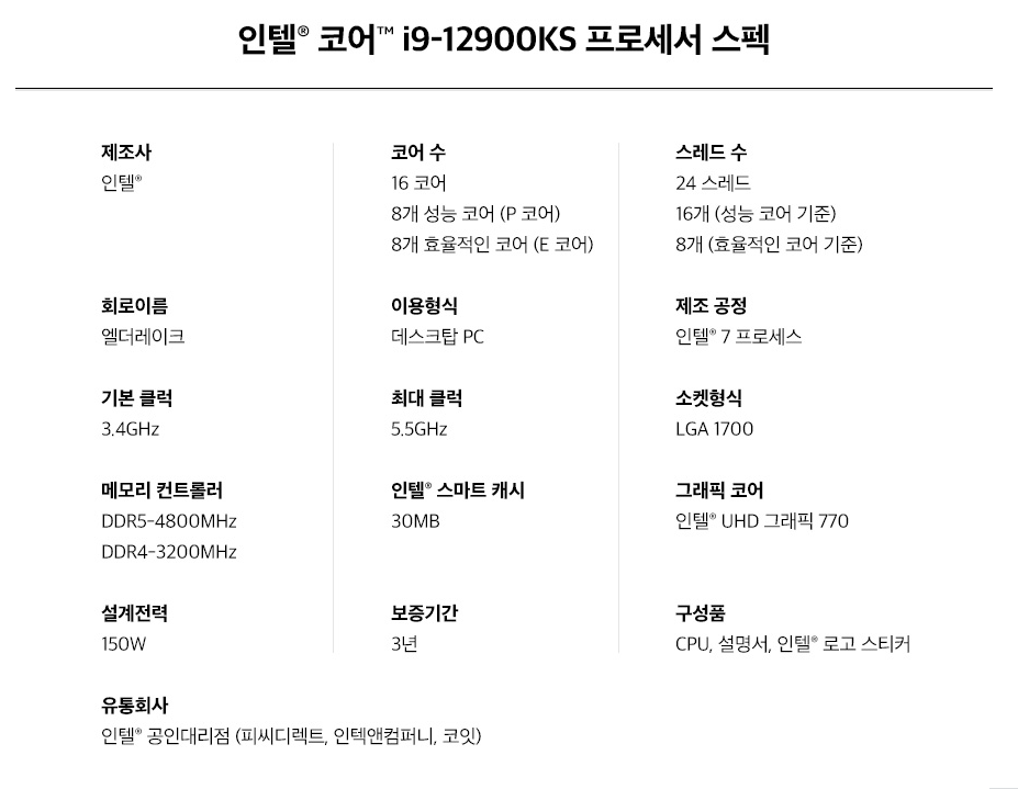 그럼 오늘의 주인공인 i9-12900KS의 스펙에 대해 한번 알아볼까요~?