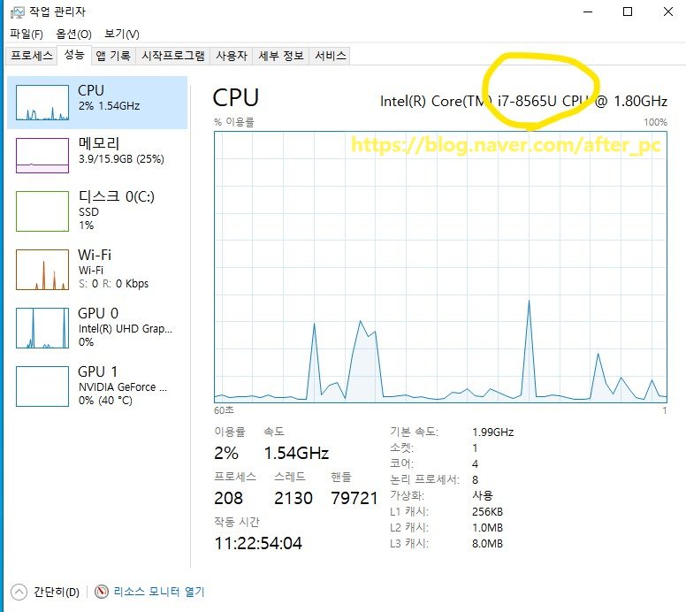 제 PC는 [ Intel(R) Core(TM) i7-8565U CPU @ 1.80 Ghz ]로 확인되네요
