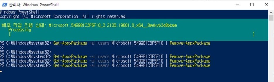 Get-AppxPackage -allusers Microsoft.549981C3F5F10 | Remove-AppxPackage